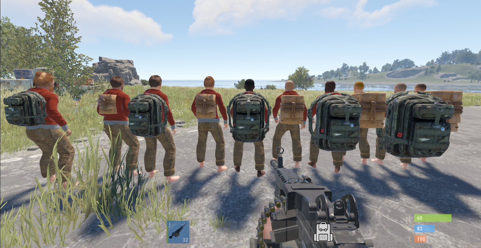 - 3D-модель рюкзака по умолчанию блокирует линию обзора, когда игрок смотрит на пальцы ног, а также блокирует пули.