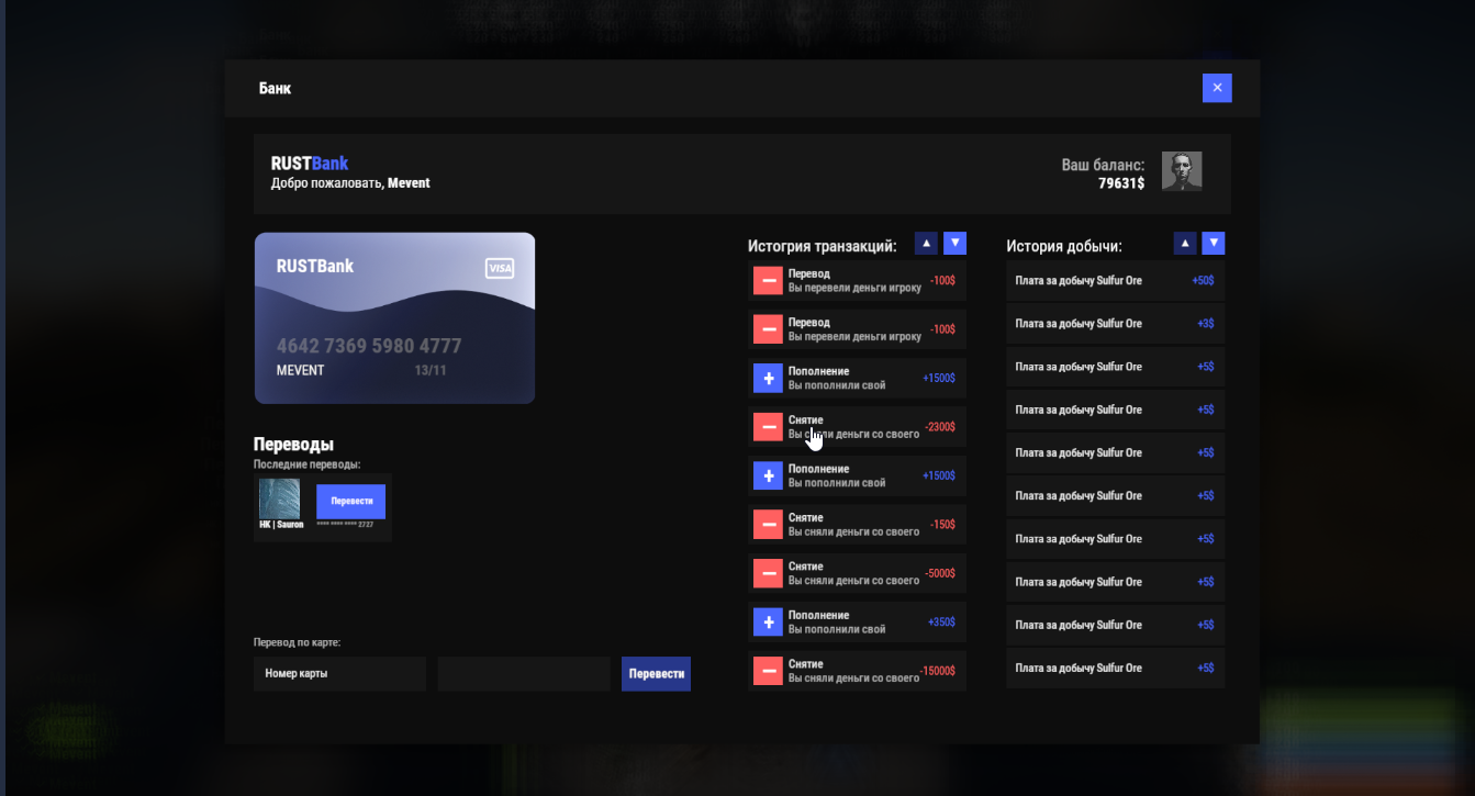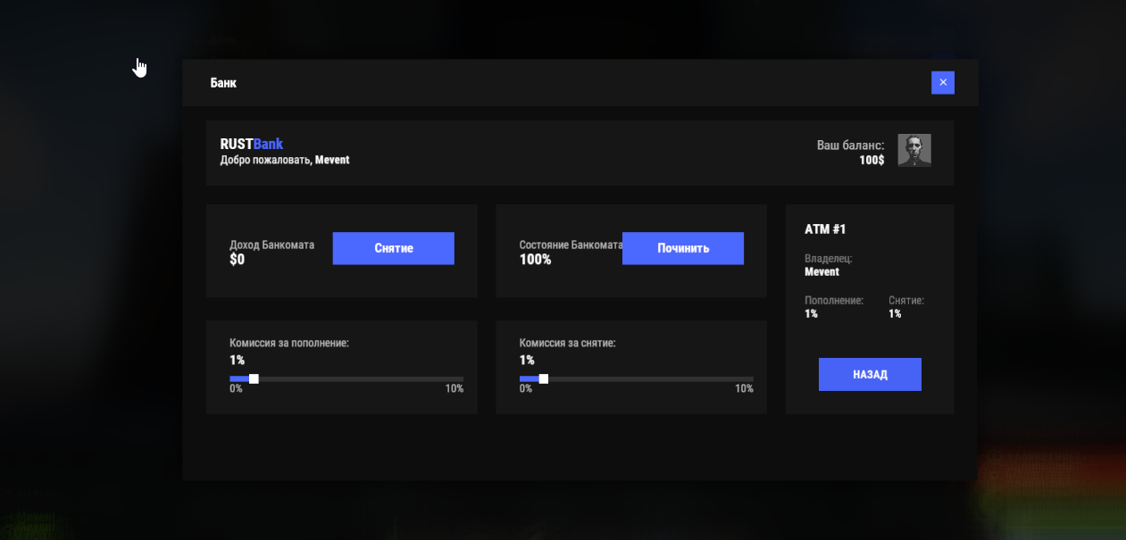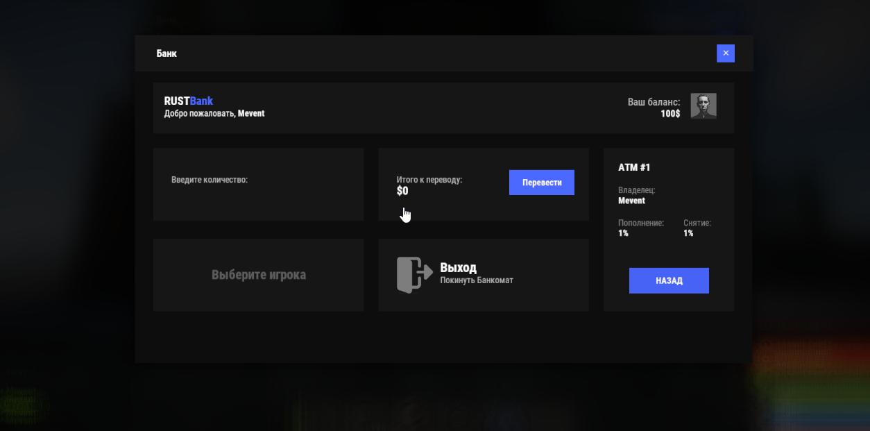 - Система Банкоматов (игрок может установить СВОЙ банкомат и получать доход с него)