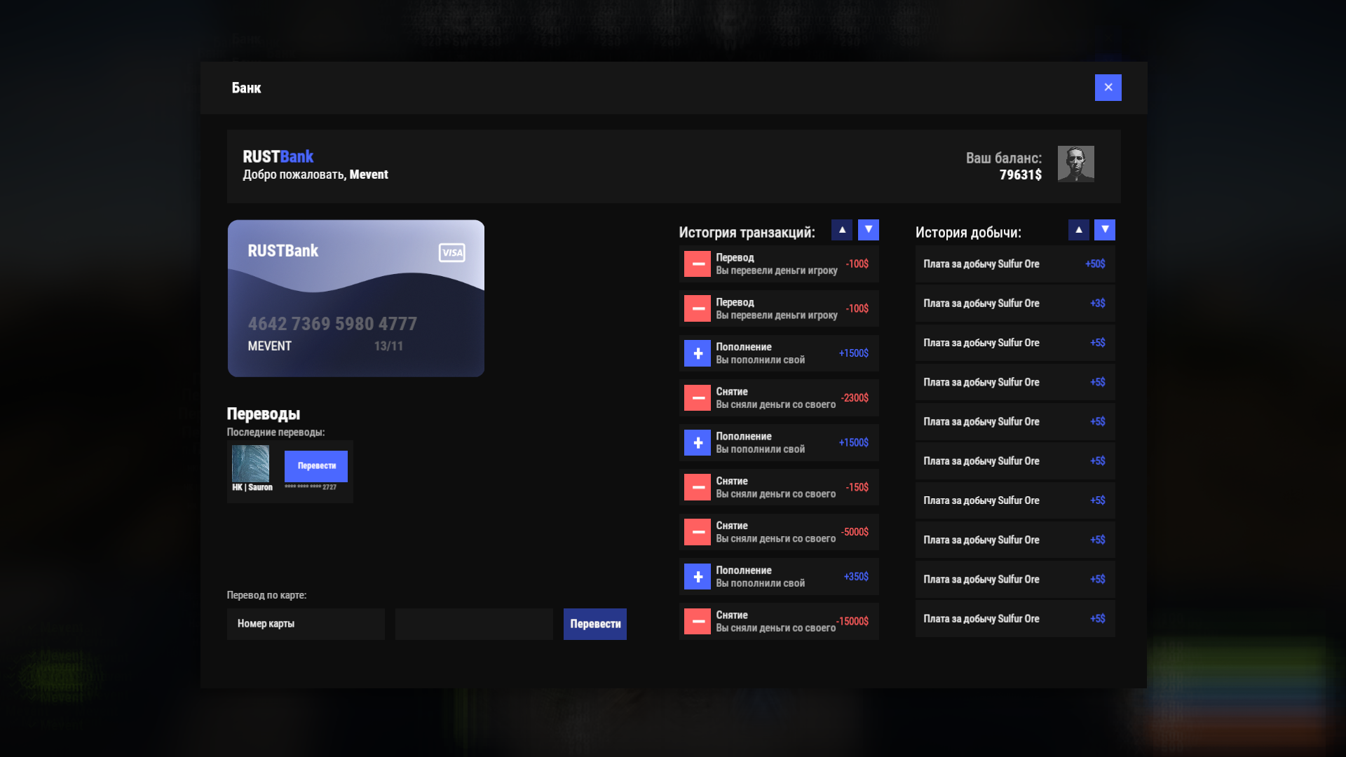 - Переводы денег между игроками