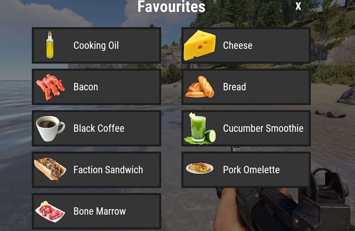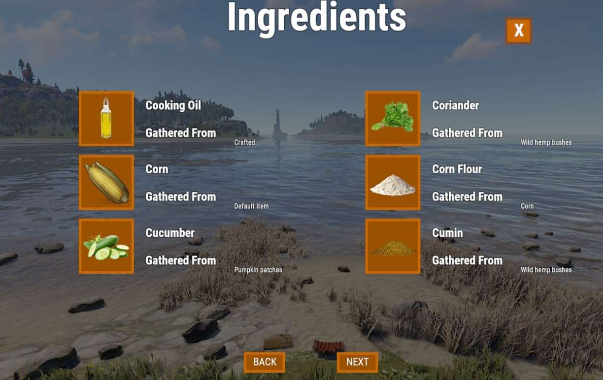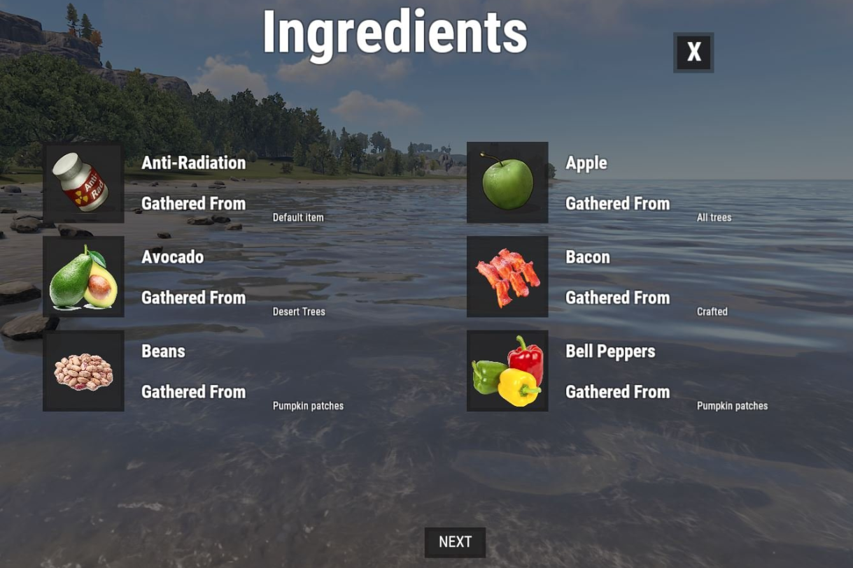 Плагин поставляется с более чем 90 уникальными ингредиентами, а также включает в себя некоторые элементы по умолчанию в rust.
