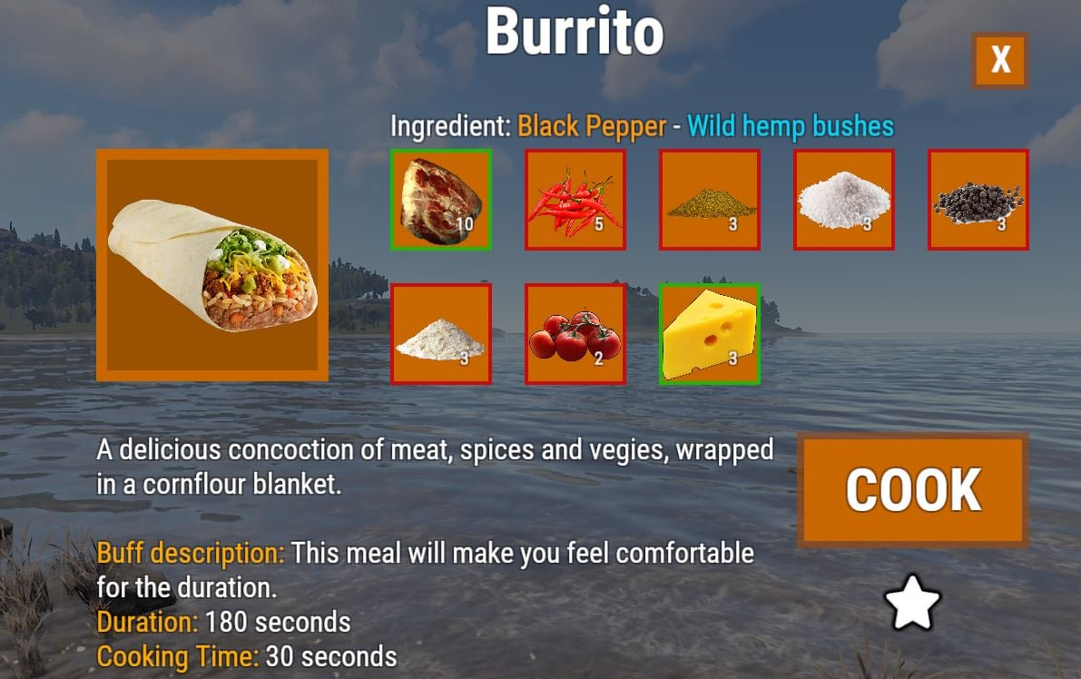 Каждый рецепт имеет список до 10 различных ингредиентов и предоставляет один из 48 уникальных баффов на настраиваемую продолжительность.