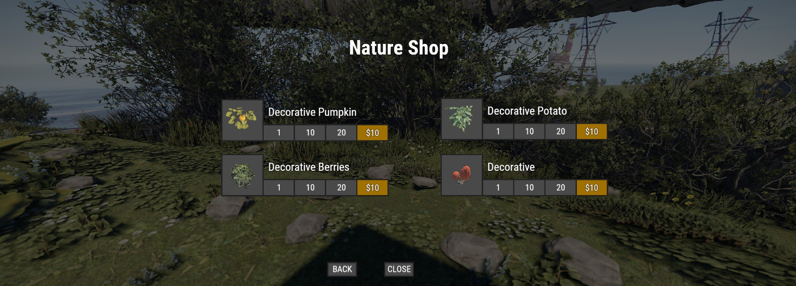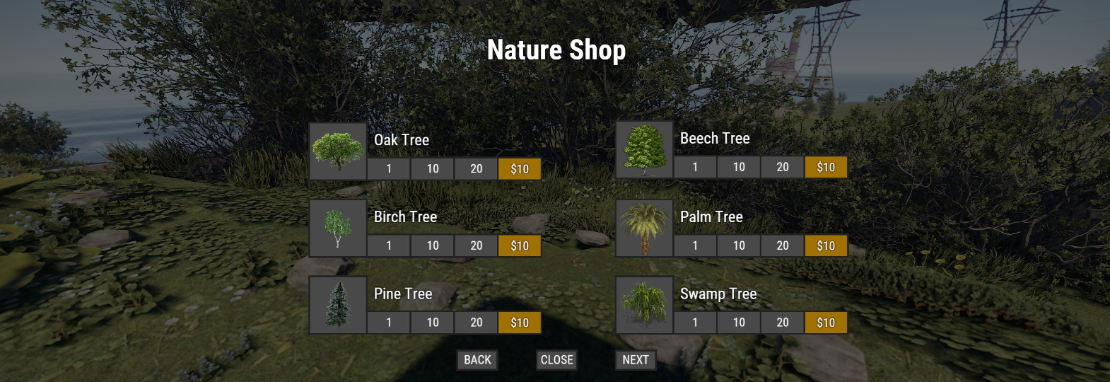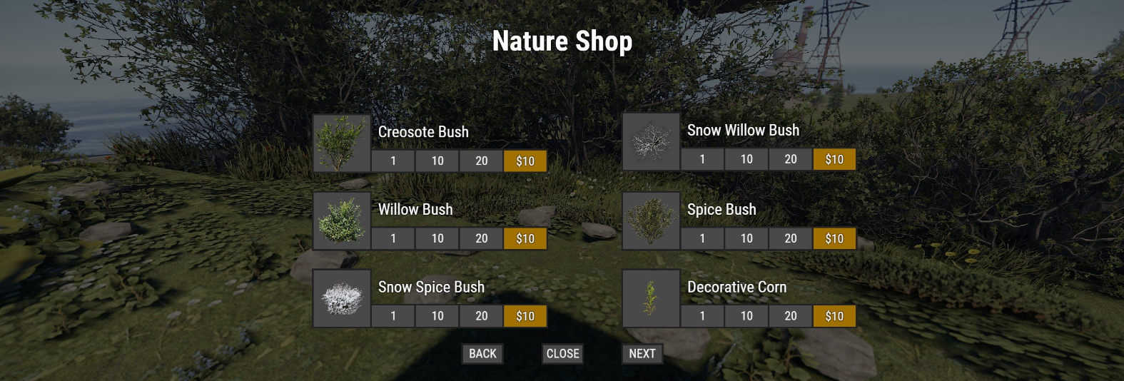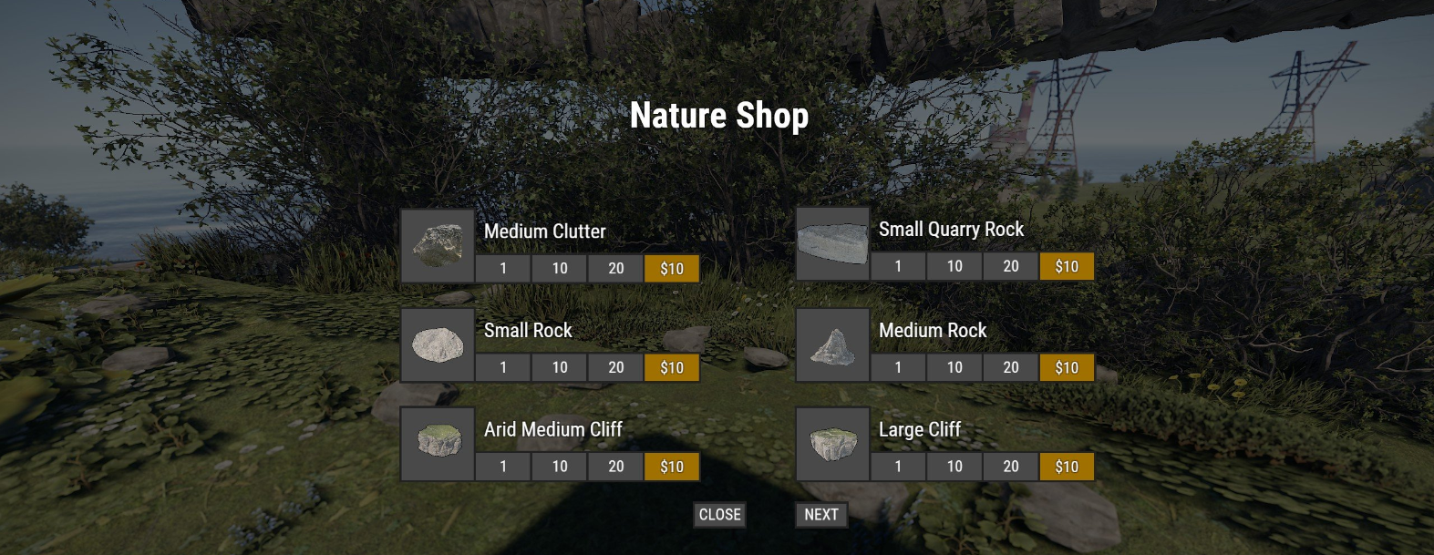 - Добавляет на ваш сервер 30 новых развертываемых элементов, которые разделены на 4 категории: деревья, камни, кусты и животные.
