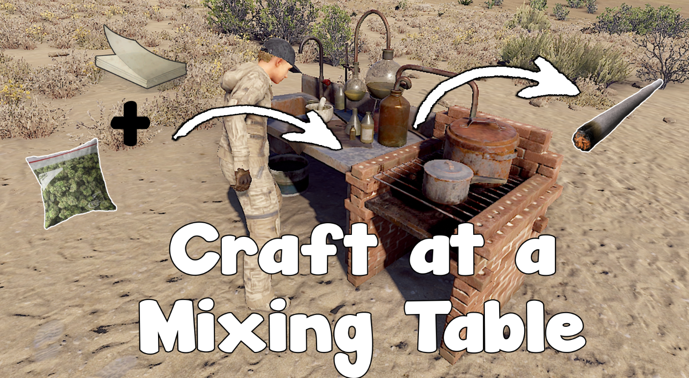 Чтобы создать косяк, подойдите к микшерному столу и откройте его. Пользовательский пользовательский интерфейс появится над вашим инвентарем, где вы можете создать косяк, просто нажав кнопку, если у вас есть для этого ресурсы (по умолчанию травка x2 и примечание x1).