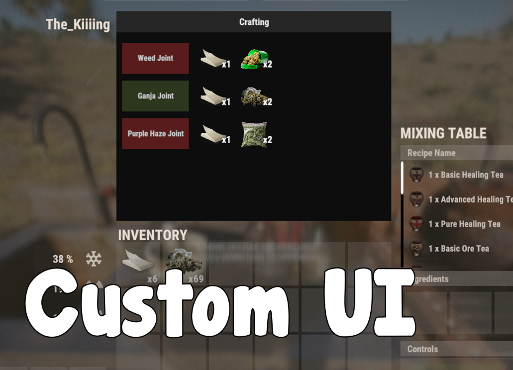 Этот плагин позволяет игрокам собирать сорняки с растений конопли и создавать суставы с помощью стола для смешивания. Сорняк разделен на три уровня, каждый уровень можно найти в другом биоме. Суставы могут быть созданы на столе для смешивания и дадут игроку настраиваемые баффы и исцеление, причем каждый уровень имеет разные эффекты. Растениям требуется определенное количество H-генов, чтобы получить сорняки.
