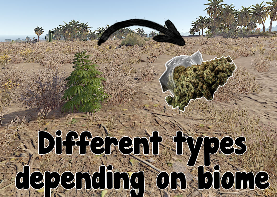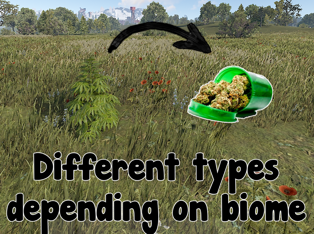 В зависимости от биома вы получите разные уровни травки, биомы также можно изменить в конфиге. По умолчанию травку 2-го уровня можно собирать в снежном биоме, 1-го уровня в пустыне и 0-го уровня в любом другом месте.