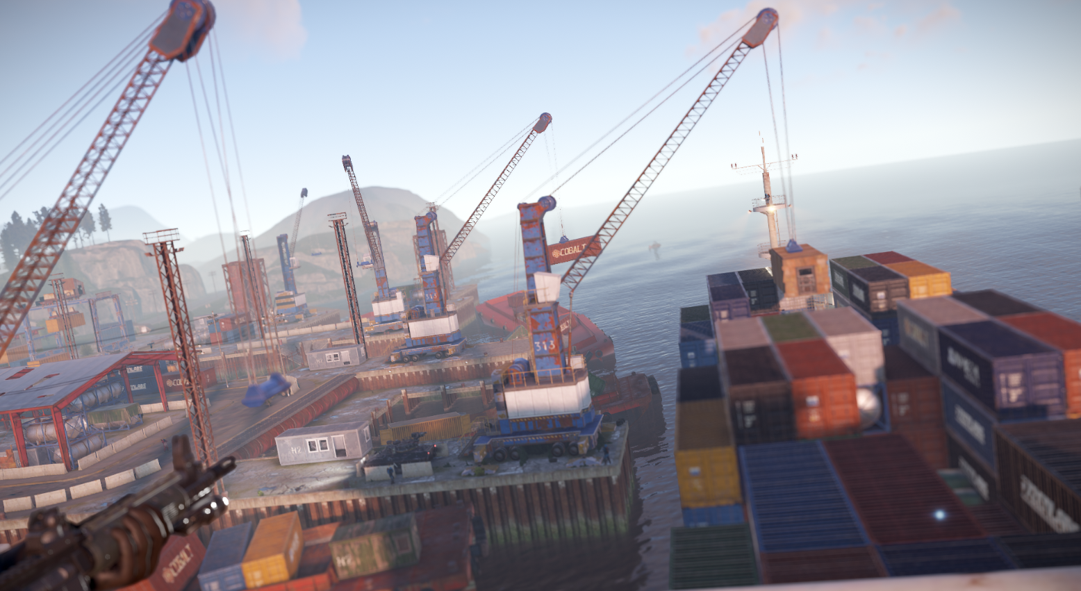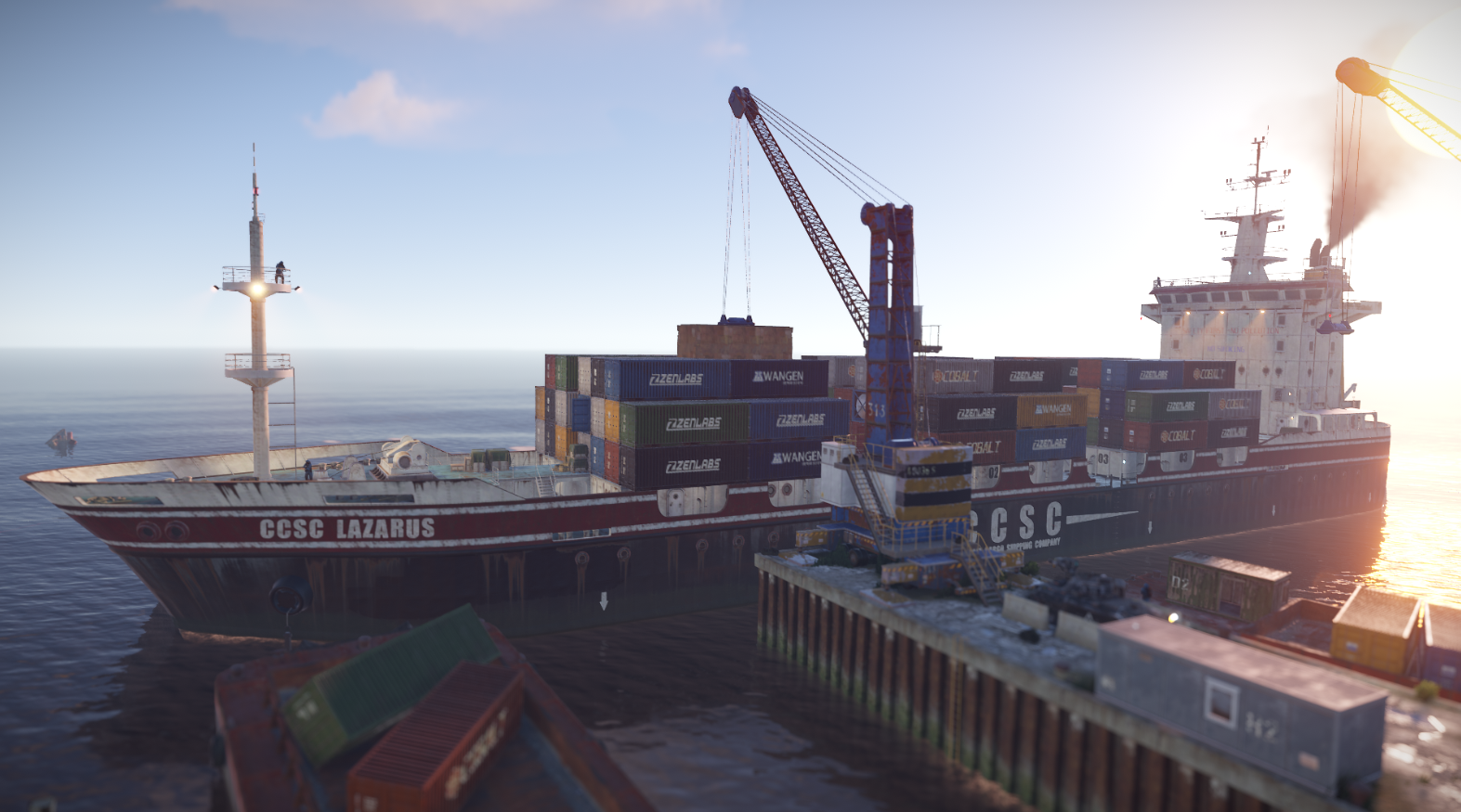 По истечении времени в любой из доступных на карте локаций Гавани появляется корабль, в который кран загружает контейнер.