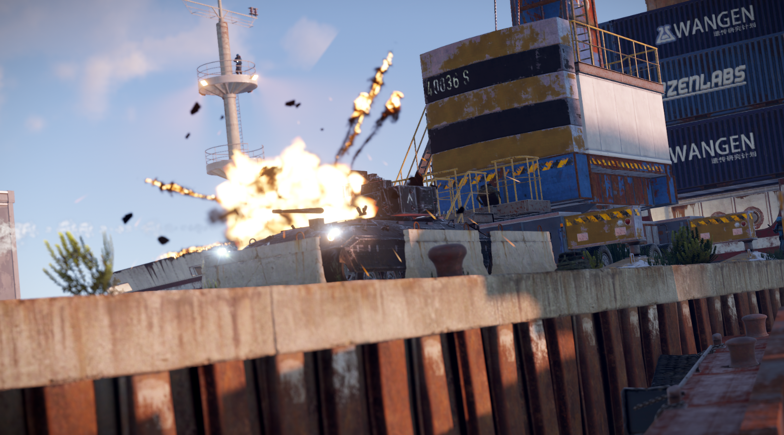 Зона загрузки по умолчанию охраняется танком и 7 NPC.