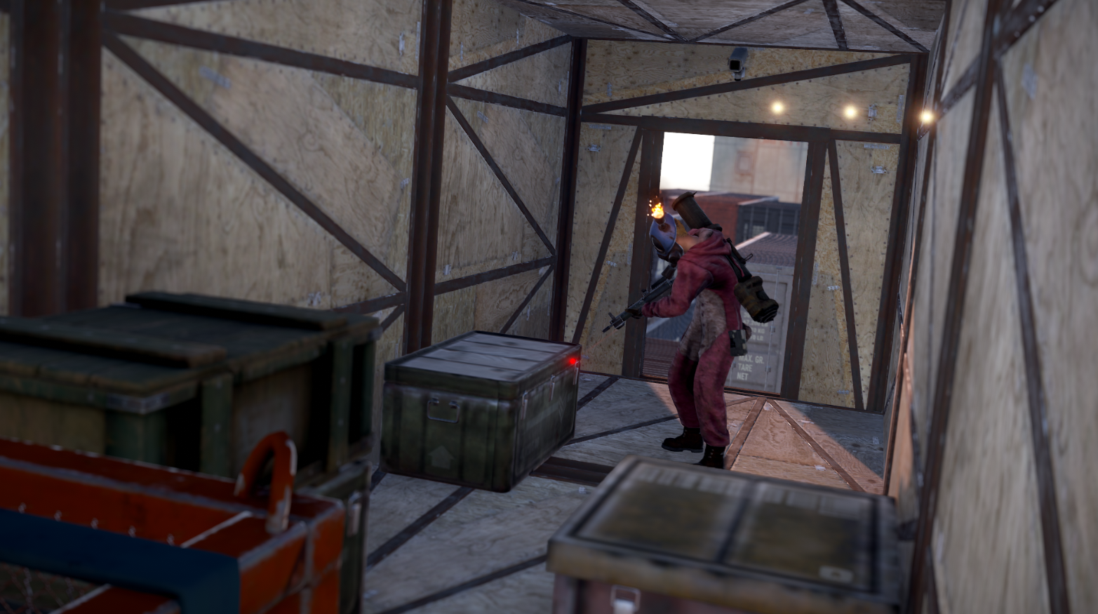 Внутри контейнера по умолчанию находится камера видеонаблюдения, запертый ящик, 2 ДМ, 2 элитных и 2 военных ящика.