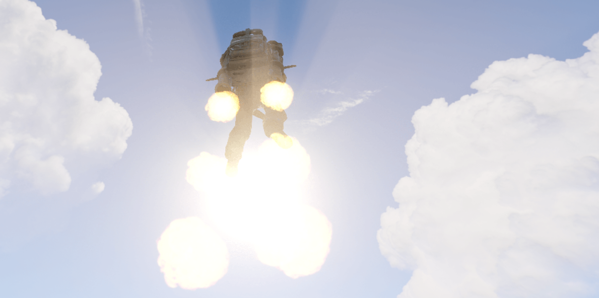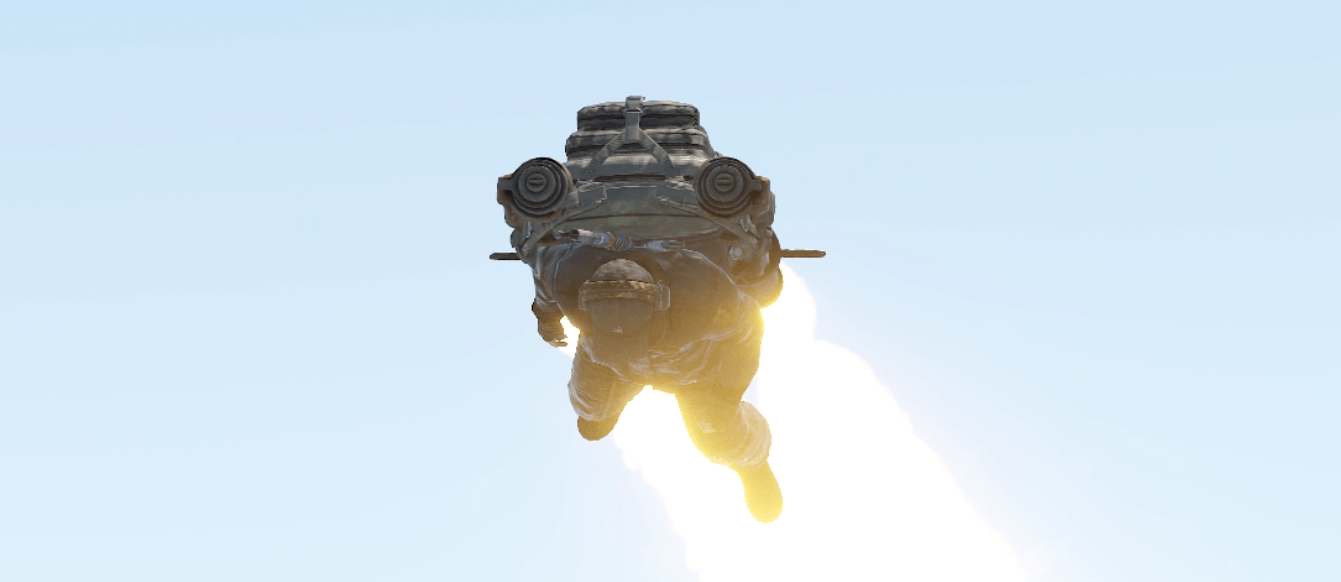 Чтобы использовать реактивный ранец, вам нужно заправить топливо в поясной контейнер.