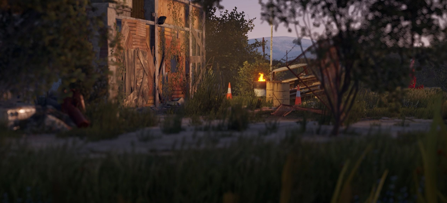 Грузовик перевозит запертый ящик по дороге. Конвой сопровождают NPC