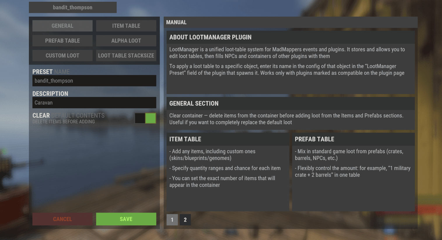 LootManager — это унифицированная система таблиц добычи, разработанная для событий и плагинов. Она хранит и управляет всеми таблицами добычи в одном месте, позволяя легко редактировать их и заполнять NPC и контейнеры из других плагинов.