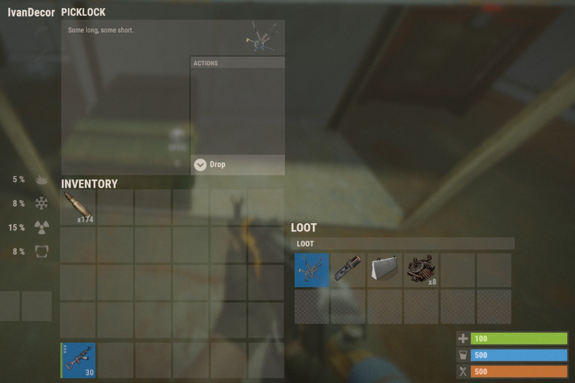 Если вы хотите открыть дверь с помощью отмычки, вам нужно подойти к двери, взять отмычку в руки игрока и нажать среднюю кнопку мыши. Начнется процесс взлома двери.