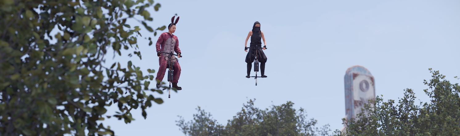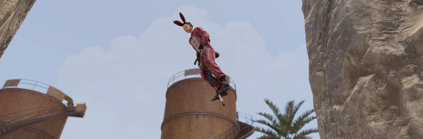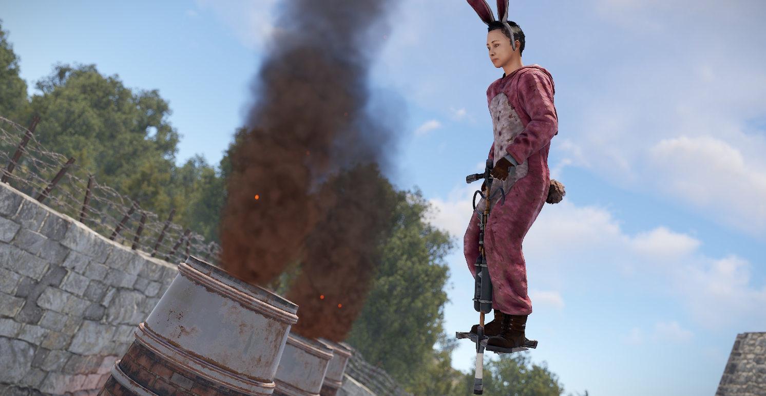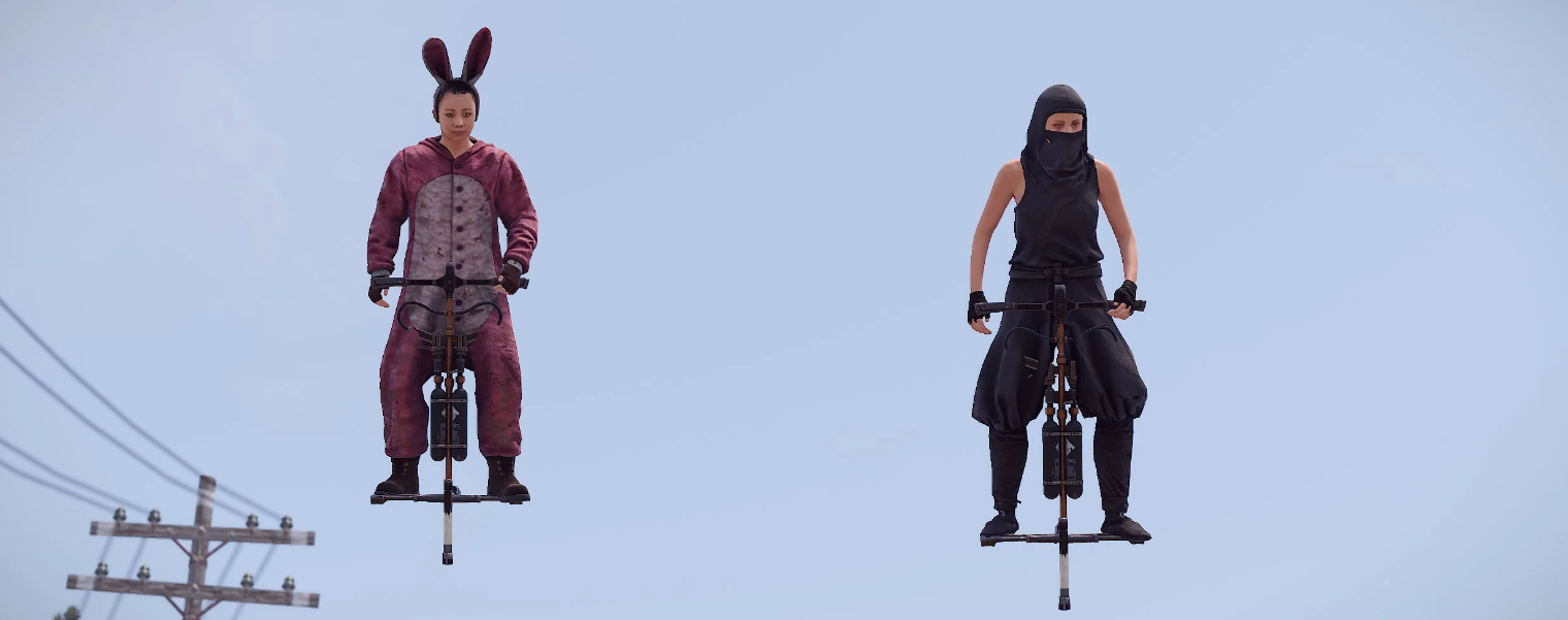 Есть два режима активации Pogo Sticks. В конфигурации по умолчанию игрок должен поместить предмет в поясной контейнер. В этом режиме Pogo Stick используется только тогда, когда он выбран в качестве активного элемента. Во втором режиме Pogo Stick активируется при добавлении его в контейнер с одеждой/броней. Чтобы использовать второй режим, замените короткие названия всех Pogo Sticks на предмет одежды. Например, «мешковина.перчатки.новинка» для замены менее заметной части вашего гардероба. Во втором режиме игроки смогут стрелять и использовать предметы, находясь на Pogo Stick! Творчество в ваших руках, получайте от него удовольствие!