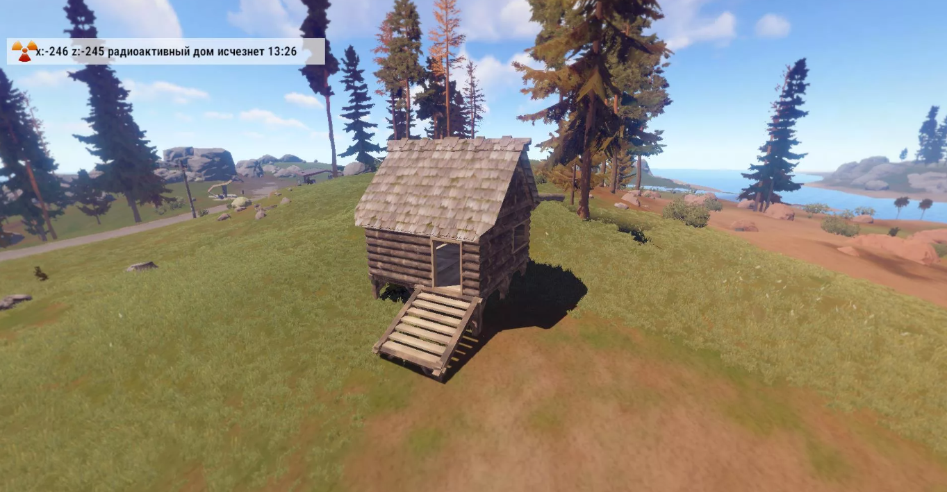 Раз в N минут в случайном месте появляется радиационный домик. В доме находится ценный лут, который могут получить игроки если смогут удержать свою позицию в домике N минут.
