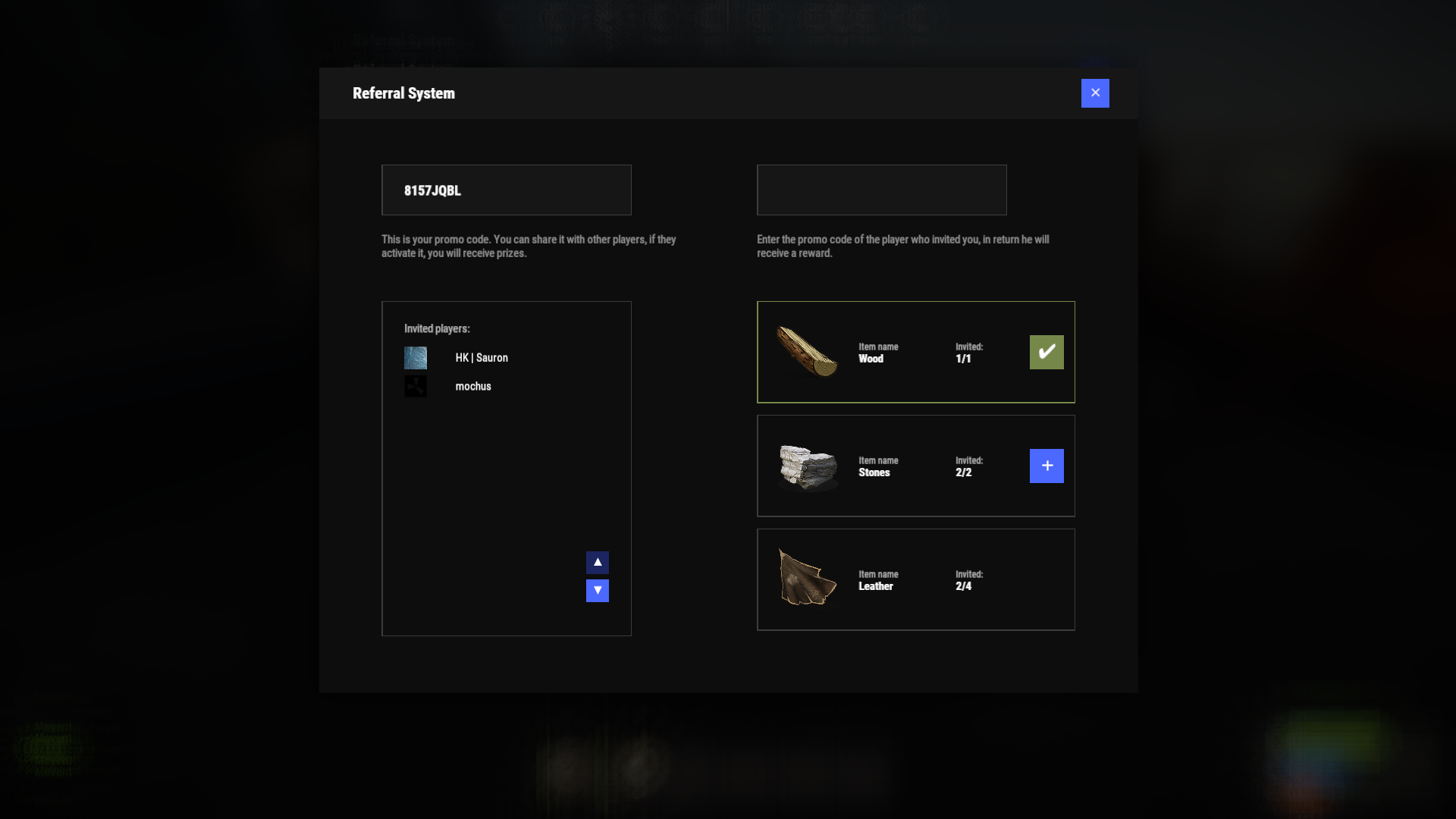 Добавляет в игру реферальную систему. Игроки могут приглашать других игроков и получать за это вознаграждение.