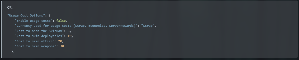Вы можете указать стоимость использования SkinBox и элементов переоформления в разделе конфигурации, озаглавленном «Параметры стоимости использования»