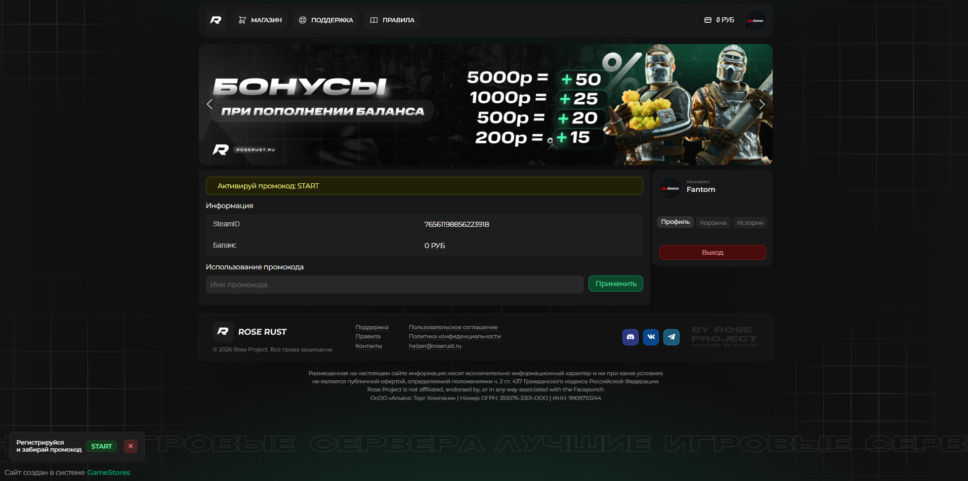 Уникальный дизайн для GameStores Rose Rust.