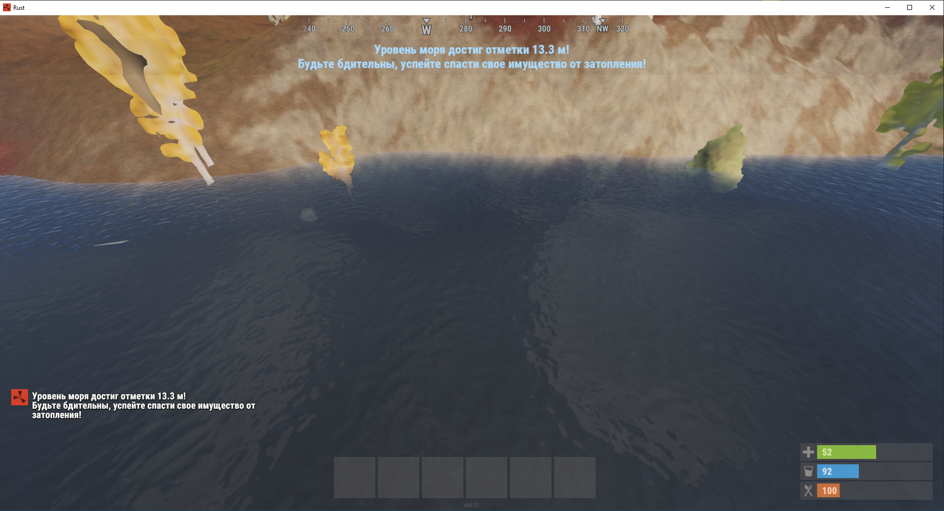 Плагин будет уведомлять игроков, о том что уровень моря растет и следует быть готовым к занятию новых территорий.