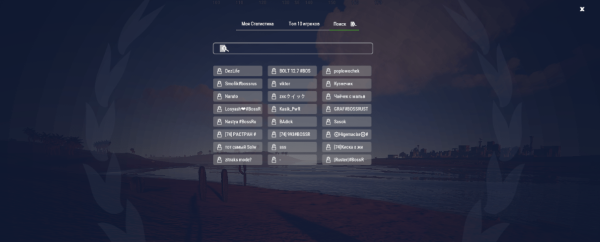 - На данный момент присутствует 3 главные страницы (Моя статистика, топ 10, поиск)