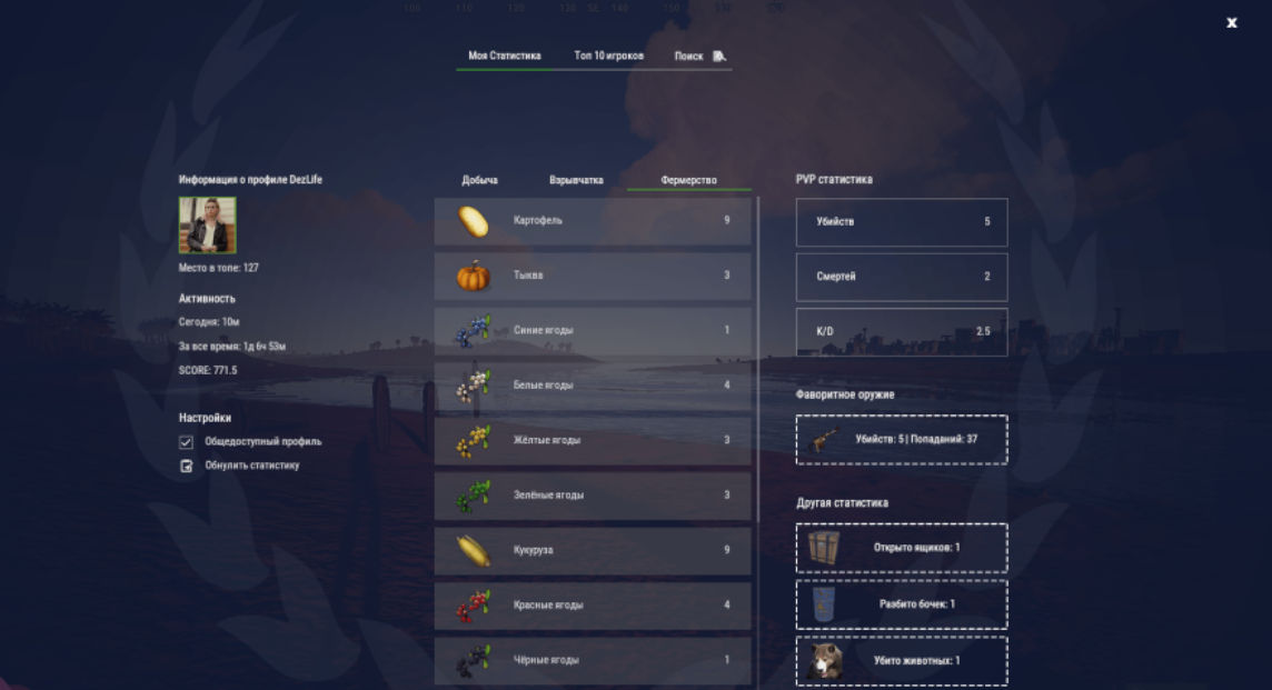 - Плагин имеет очень детальную статистику. В ней игрок сможет увидеть все что ему будет интересно!