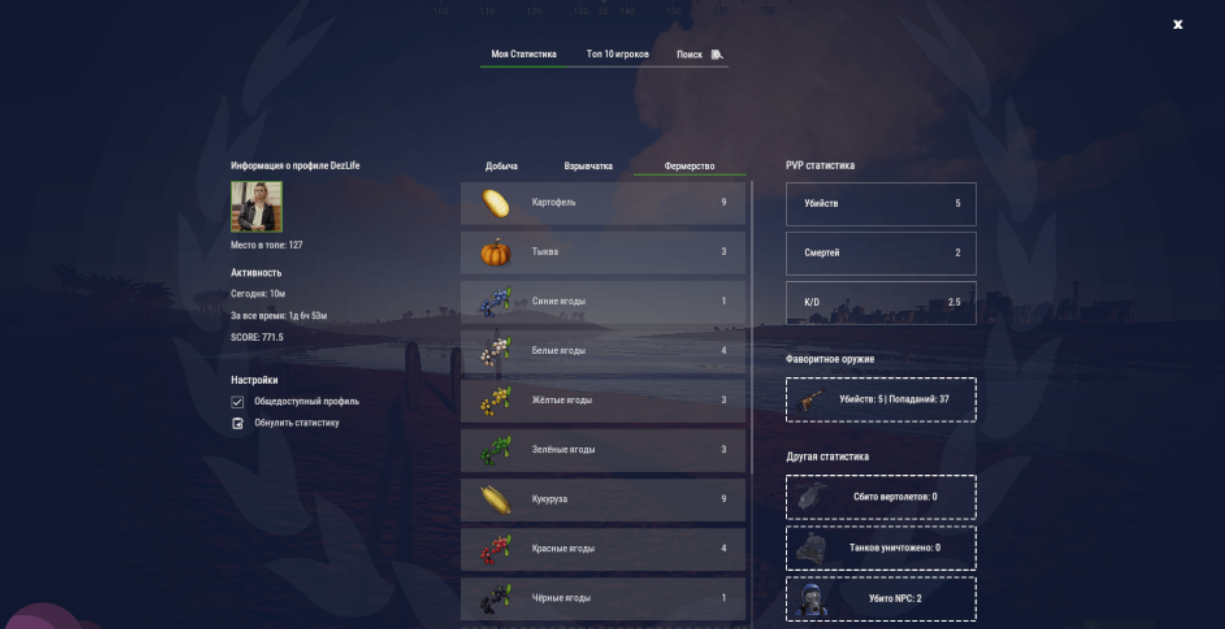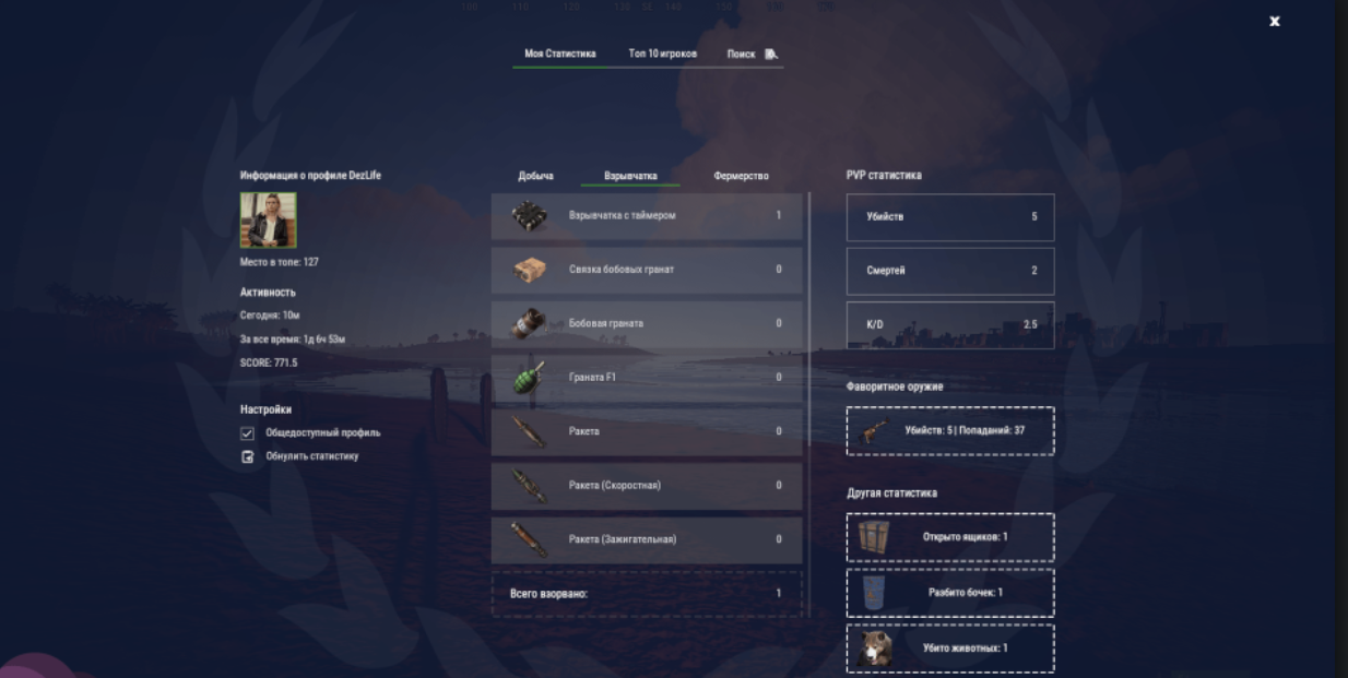 - Добавить вкладку с оружием, что бы игроки смогли смотреть свою детальную статистику по определенным оружиям