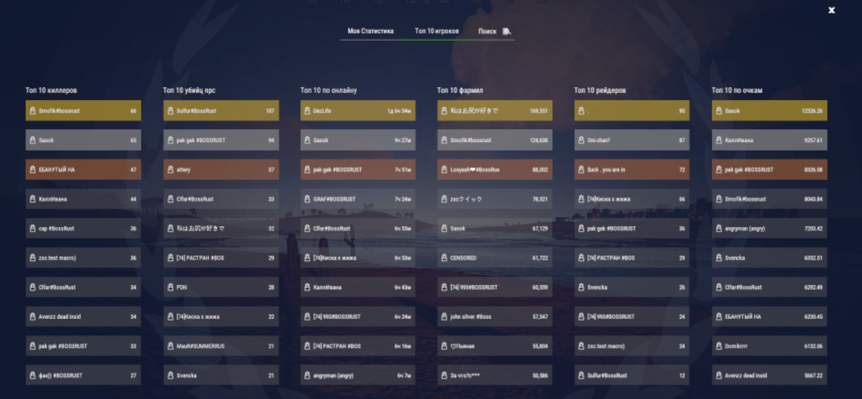 - Присутствует возможность награждать топ 1 игроков в каждой категории или в какой то определённой. Награда выдается при заходе игрока на сервер после вайпа.
