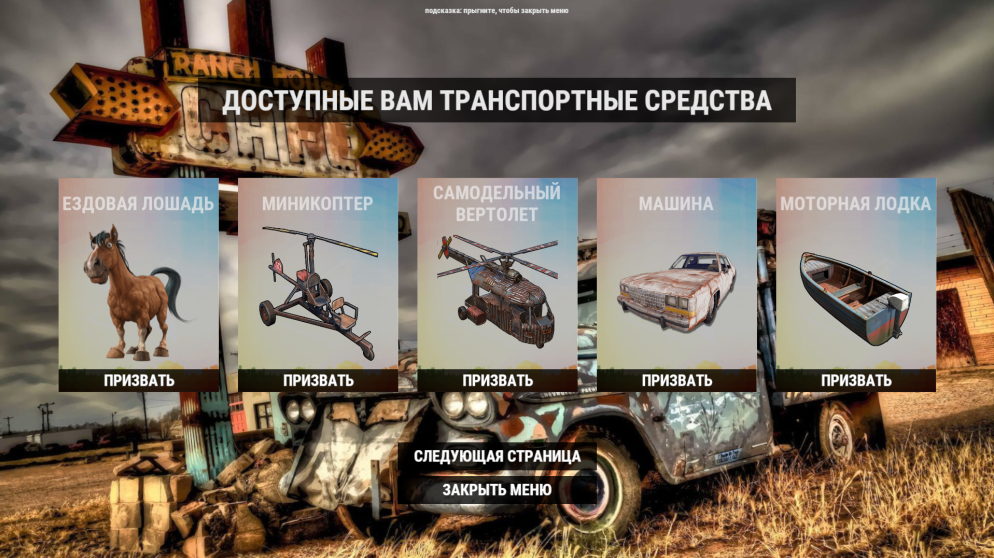 ПОЛНОЦЕННОЕ МЕНЮ ДЛЯ ПРОДАЖИ ЛИЧНОГО ТРАНСПОРТА ИГРОКАМ